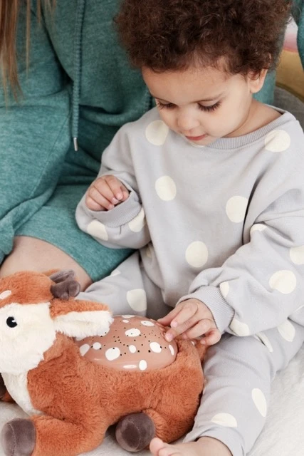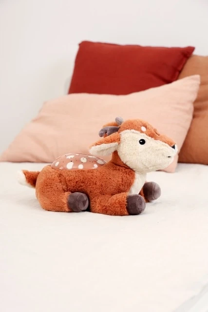 Avec cet adorable fauve, les petits n’auront plus peur du noir. Cette peluche se transforme en veilleuse à la nuit tombée pour illuminer la chambre de bébé avec des projections d’étoiles. Elle projette des étoiles de 3 couleurs au plafond, dont 3 véritables constellations.