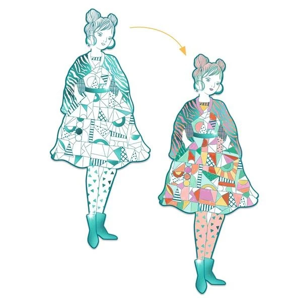 Un défilé de demoiselles aux tenues chamarrées à colorier au gré de sa fantaisie ! Quatre grandes silhouettes de 32 cm de haut présentent des tenues riches en motifs et agrémentées de zones brillantes pour donner encore plus d’allures aux modèles !