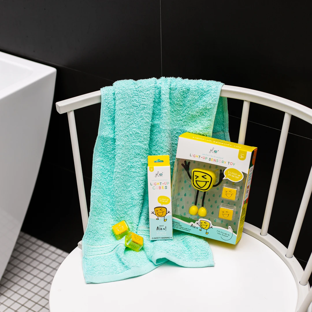 Les Glo Pals ont été inspirés par un enfant autiste dont la mère a utilisé la technologie derrière Glo Pals pour l’aider à surmonter sa peur de l’eau. Son histoire a influencé le développement des personnages Glo Pals afin de créer un produit qui engage les enfants dans des exercices sensoriels et illumine l’heure du bain.