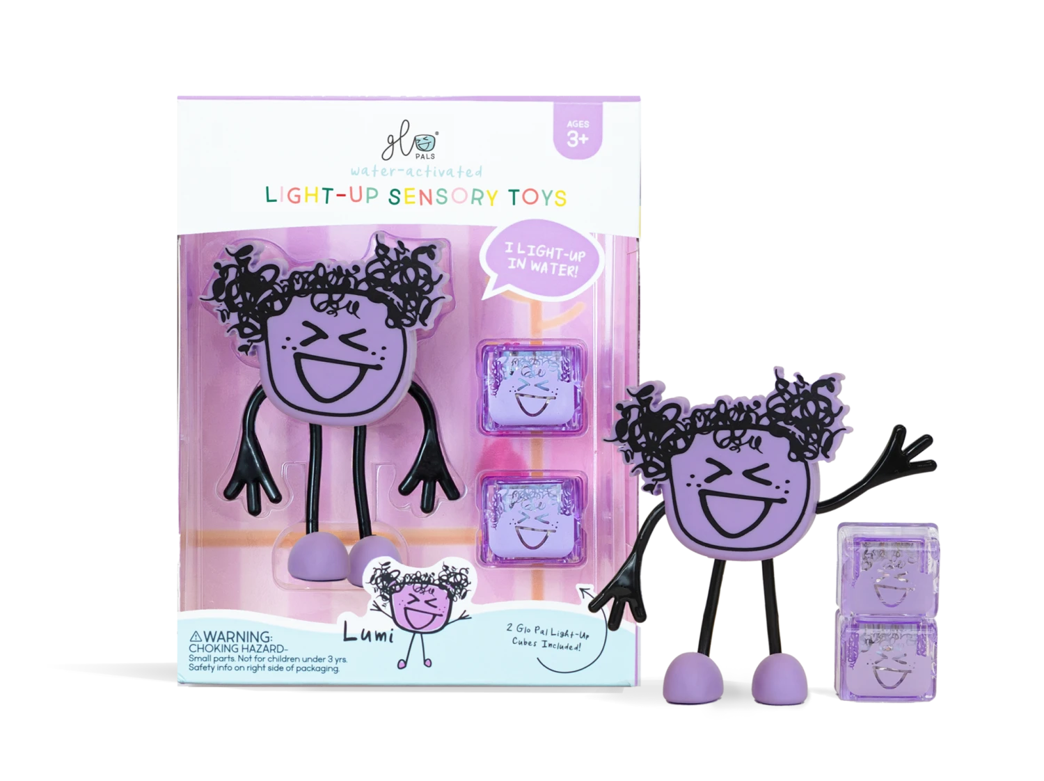Insérez votre cube lumineux Glo Pals à l’arrière de chaque Pal, déposez-le dans l’eau et regardez-le s’allumer! Doté de bras pliables et de personnalités colorées, chaque Pal illustre fièrement le caractère unique de chaque enfant!