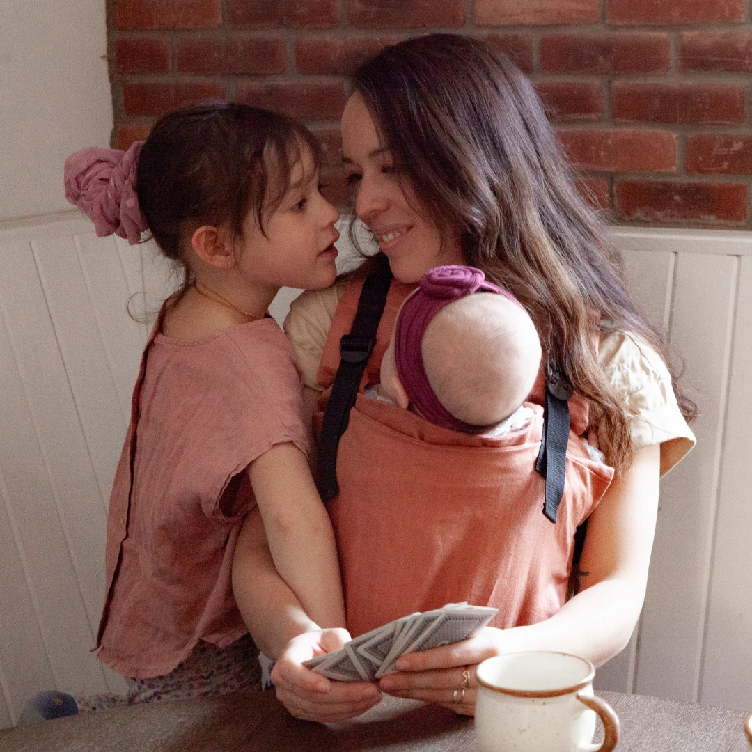Les préformés Gustine offrent 3 positions de portage : ventral, au dos et à la hanche. Ils ne sont pas conçus pour un portage ergonomique face au monde. Le portage à la hanche qui permet à bébé de regarder le monde lorsqu’il est réveillé, mais lorsqu’il est fatigué, il a la possibilité de reposer sa tête contre le porteur.
