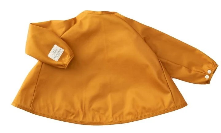 Coupe longue et ronde, munie de manches longues, pour une meilleure protection des vêtements lors des repas.