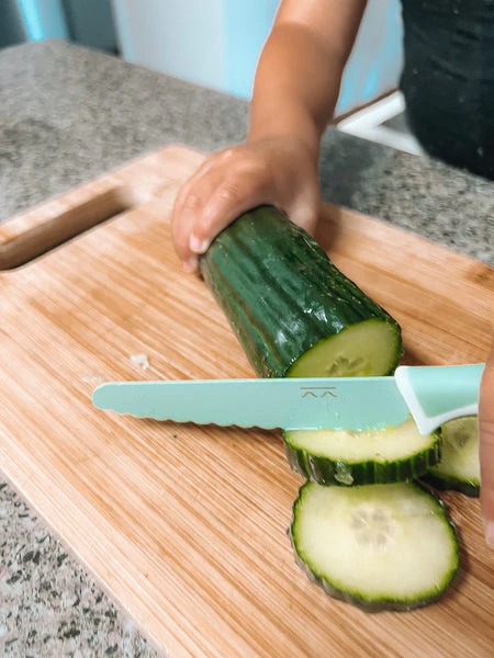 Utilisez le couteau Kiddikutter comme excuse amusante pour créer des liens avec vos enfants tout en grignotant des concombres et des carottes.