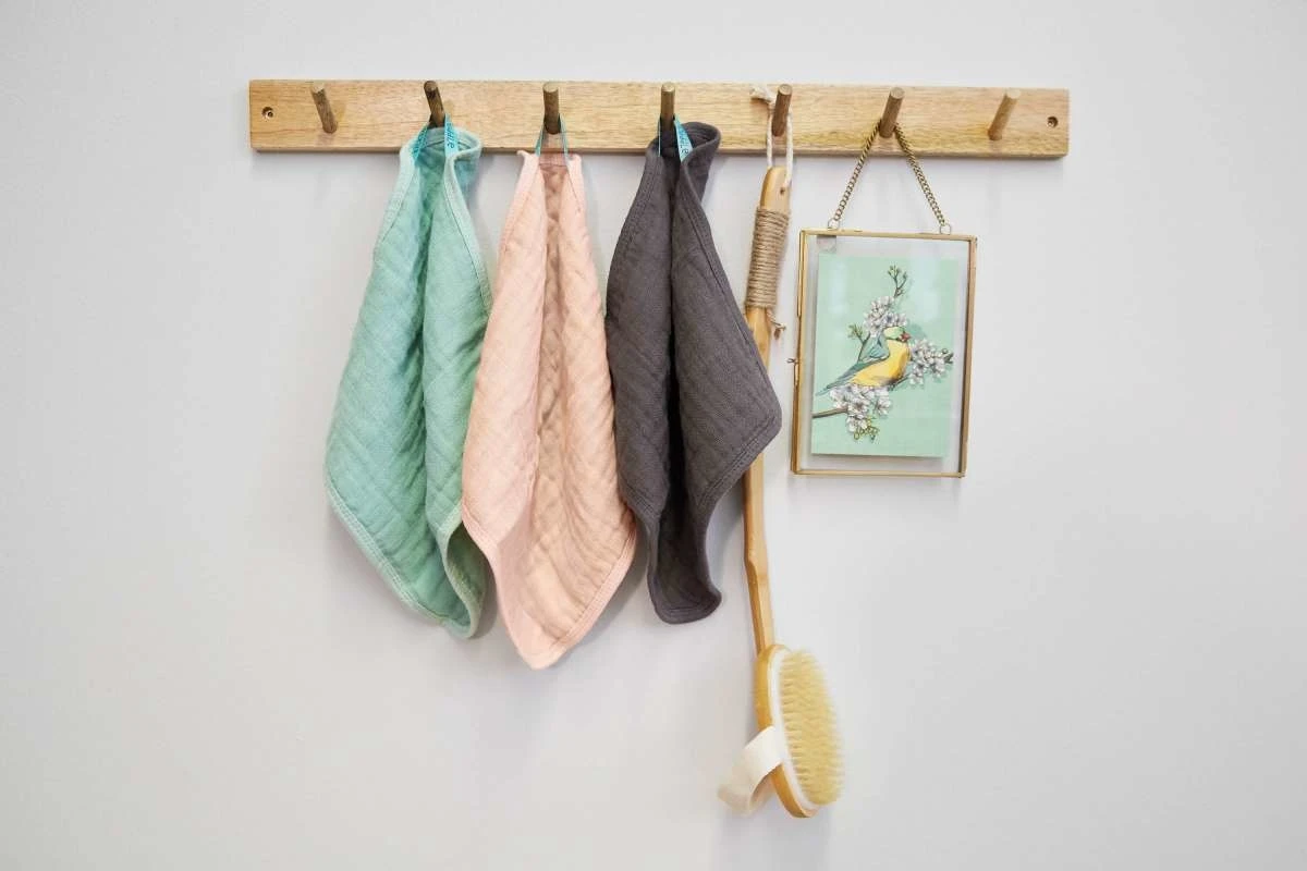 Douces et double couche, les débarbouillettes mousseline 100 % coton sont des accessoires respectueux de la peau pour la toilette de bébé.