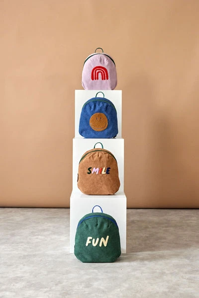 Petit sac à dos en corduroy Blue Smiley