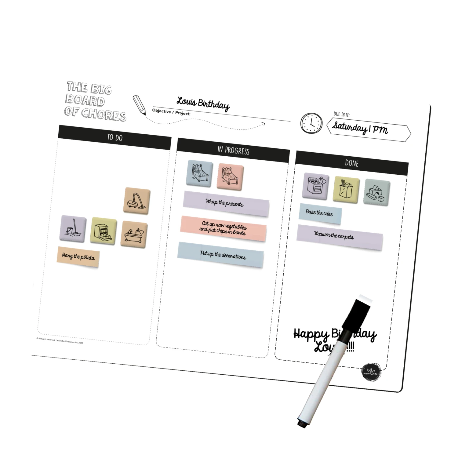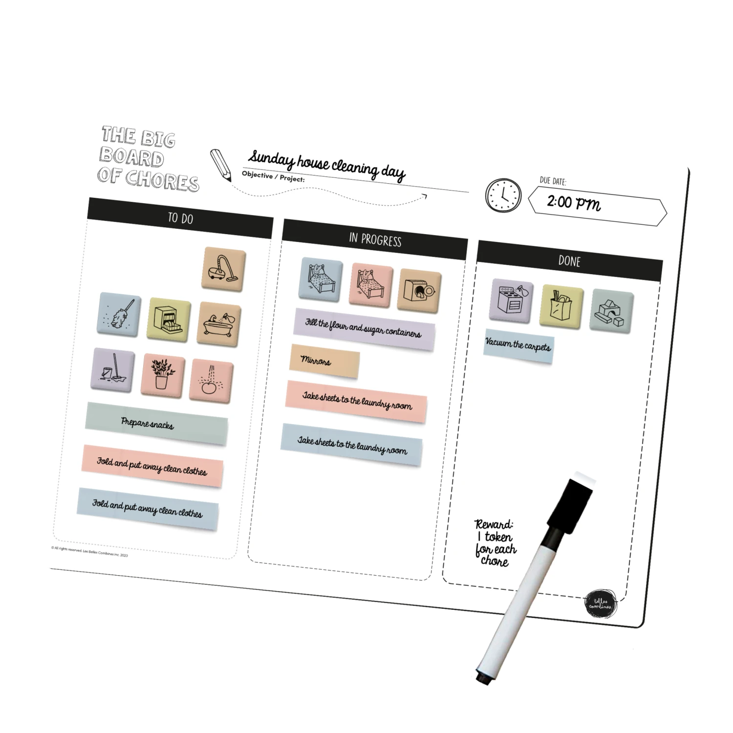 A large, versatile and scalable board that allows your child to complete more complex tasks or organize their day. You can also use it to plan a family project such as spring cleaning, a party or to plan a vacation.