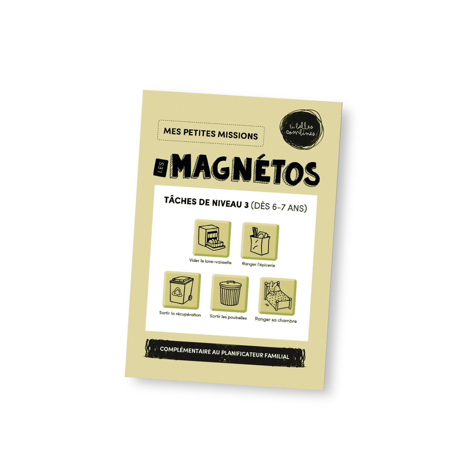 Adaptés au planificateur familial hebdomadaire, aux petits tableau de tâches 5 et 10 étapes, ces aimants permettent de distribuer les tâches de manière visuelle.