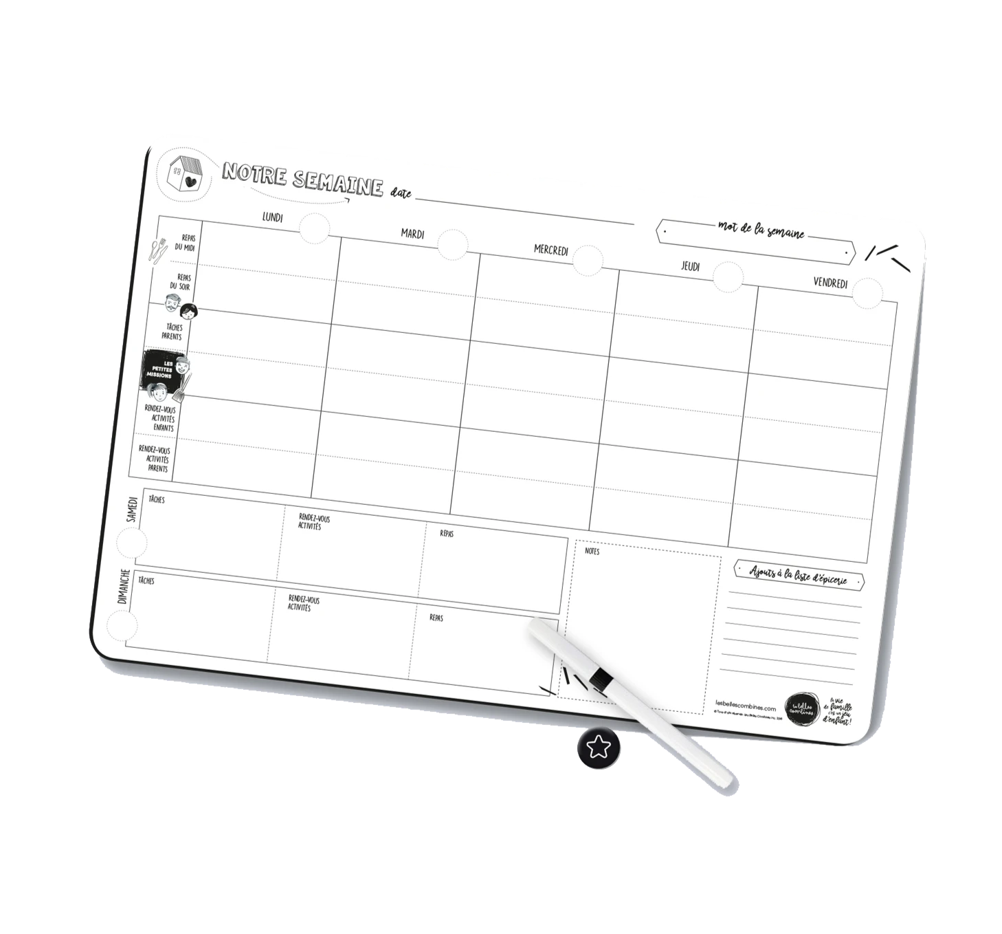 Déplacez l’aimant étoile pour marquer la journée en cours