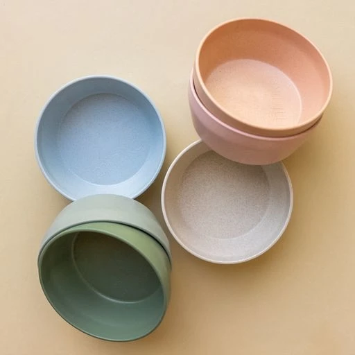 Vaisselle pour enfants en paille de blé. Biodégradable et durable. Non toxique. Allant au lave-vaisselle et micro-ondes. Aussi solide que le plastique.