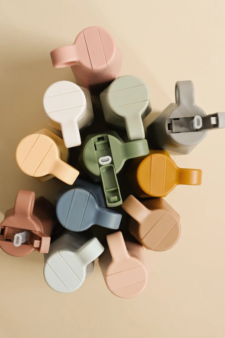 Bouteille d’eau en silicone avec paille et couvercle en plastique. Silicone alimentaire sans BPA. Laver avec du savon et un chiffon mouillé ou au lave-vaisselle.