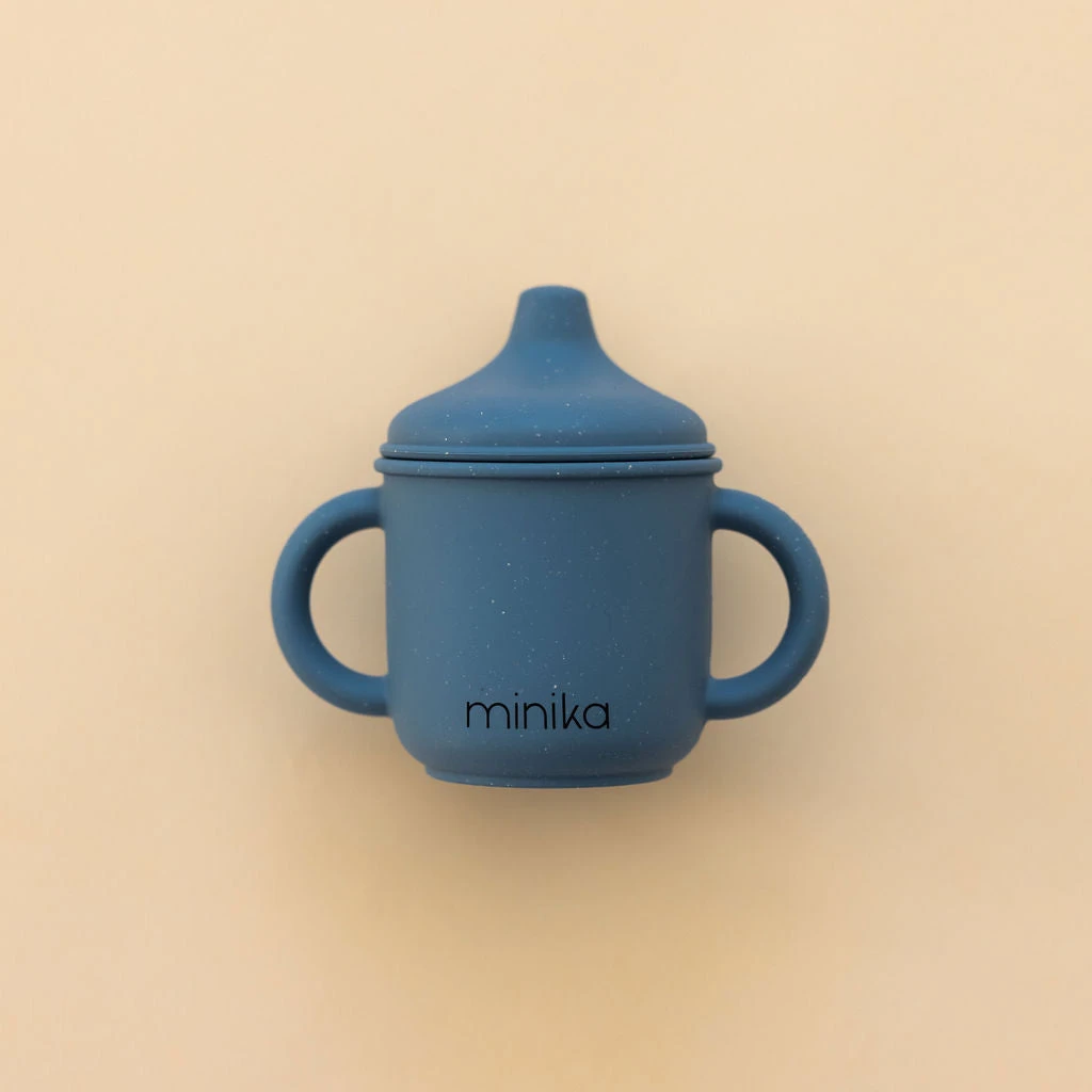 Verre à bec avec poignées. Petit format idéal pour les petites mains. Silicone alimentaire sans BPA. Laver avec du savon et un chiffon mouillé ou au lave-vaisselle. Allant au micro-ondes et au congélateur.