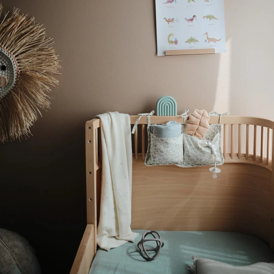 Gardez les essentiels de votre bébé organisés et magnifiquement affichés dans cette poche de berceau. Conçue pour accentuer la pièce et minimiser l’encombrement, cette élégante poche de lit d’enfant est compatible avec la plupart des berceaux. Attachez la poche du berceau aux barres, aux balustrades ou aux étagères du berceau avec les 3 ensembles de rubans attachés.