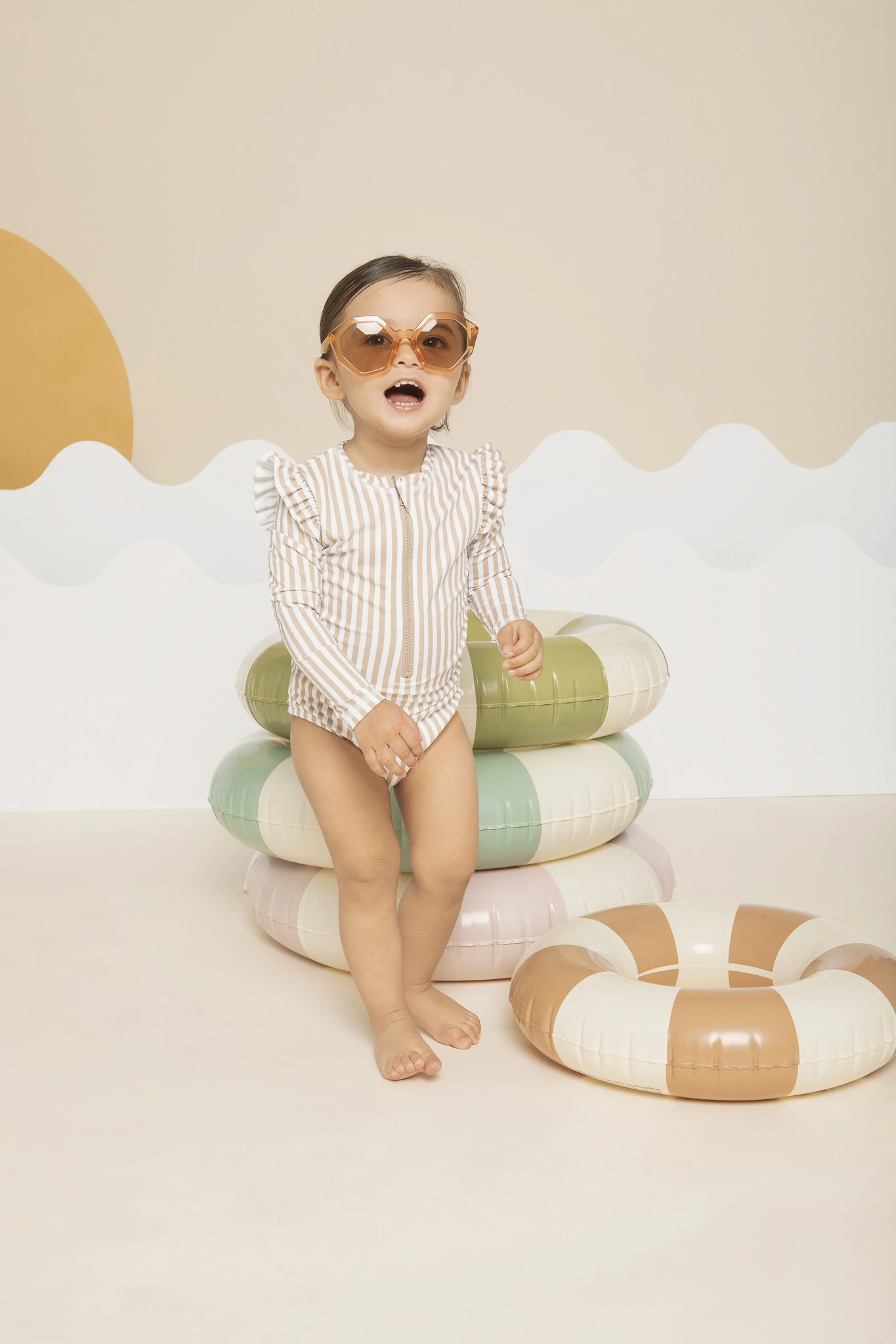 Maillot une pièce ligné Taupe