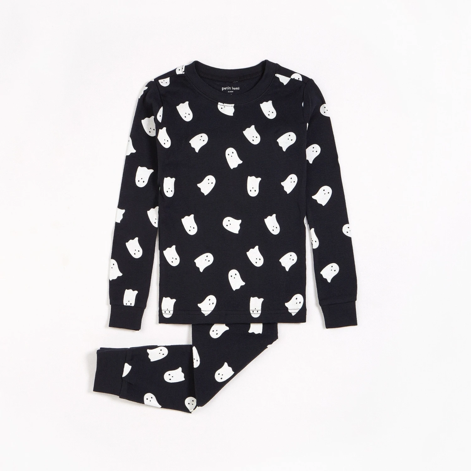 Y a-t-il quelque chose de plus amusant qu’un pyjama qui brille dans le noir ? Ce pyjama avec imprimé fantôme est amusant et effrayant, à tel point que les enfants voudront le porter toute l’année ! Toute la famille pourra passer un moment diabolique ensemble puisqu’il existe des modèles assortis pour maman, papa et les jeunes frères et sœurs. L’ensemble deux pièces est fabriqué à partir de coton côtelé biologique, qui est doux, léger et respirant. Les poignets et les chevilles élastiqués assurent un maintien et une souplesse qui permettent aux enfants de courir, de s’étirer ou de causer la zizanie dans la maison. Le pyjama est complété par une encolure arrondie et une bande de taille légèrement élastique pour faciliter l’habillage.