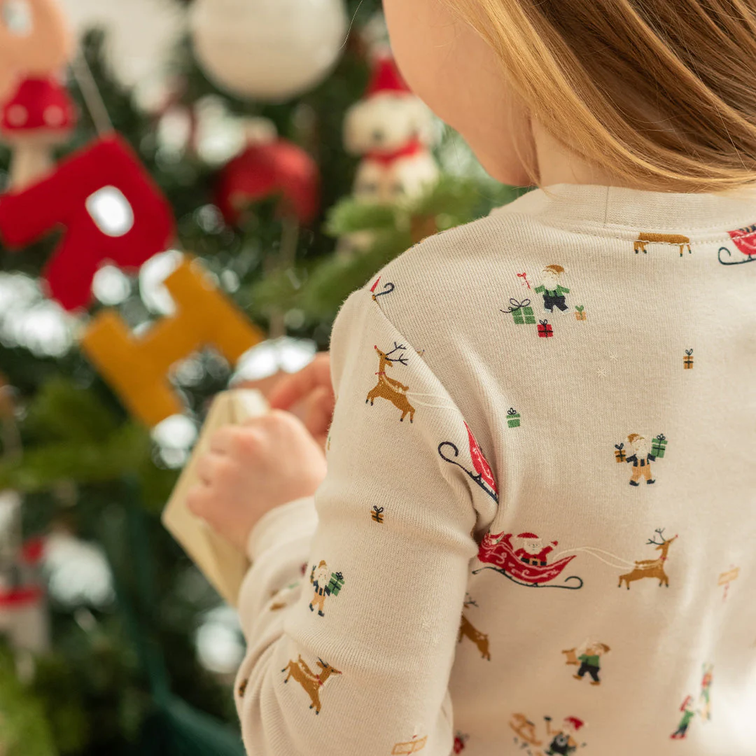 Préparez-les pour le grand jour avec ce pyjama douillet arborant notre motif de l’atelier du Père Noël. Fabriqué en coton côtelé biologique, l’ensemble est suffisamment douillet pour les garder au chaud, tout en étant assez léger pour qu’ils puissent courir et jouer en toute liberté. L’ensemble deux pièces a une encolure arrondie qui permet de changer l’enfant par-dessus la tête plus rapidement les matins froids, tandis que le pantalon est doté d’une bande de taille élastique qui permet de l’enfiler et de le remonter facilement. Des dormeuses assorties sont disponibles pour les jeunes frères et sœurs, afin qu’ils partagent leur enthousiasme ensemble.
