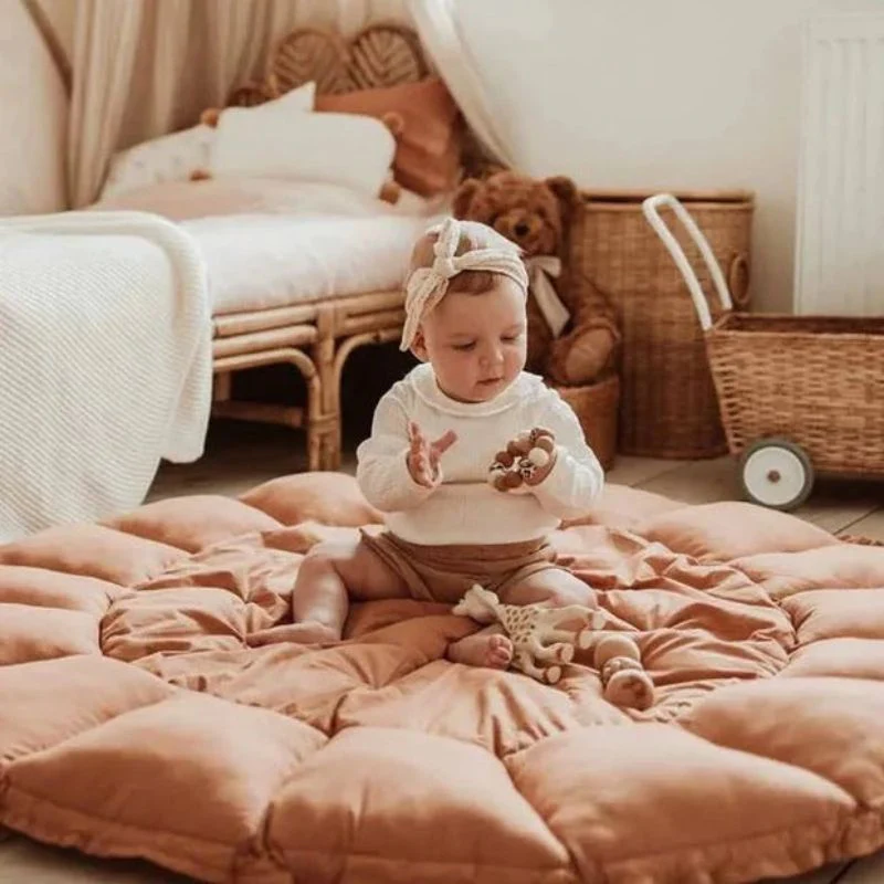 Avec sa conception unique 3-en-1, le tapis de jeu Bloom grandit avec votre tout-petit! Lorsque les pétales sont relevés, ils forment une station de repos sûre pour votre mini, avec des pare-chocs souples pour sa protection. Lorsque les pétales sont en fleurs, le tapis de jeu s’ouvre, créant un grand tapis de jeu confortable pour les tout-petits qui bougent davantage. Et enfin, ce compagnon de jeu peut également être utilisé pour ranger les jouets. Le tapis parfait!