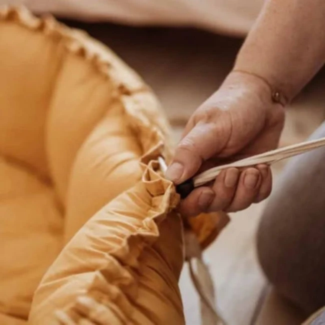 – Soulevez les pétales en tirant doucement sur les ficelles, puis placez les ficelles à l’intérieur de la poche intégrée