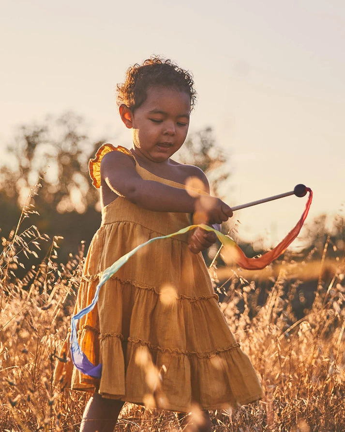 Les mini rubans encouragent votre enfant à jouer activement, à augmenter sa qualité de mouvement et à lui donner envie de danser ! Certaines idées de jeux incluent agiter dans le vent, écrire des lettres dans l’air, faire semblant de pêcher, et bien plus encore !
